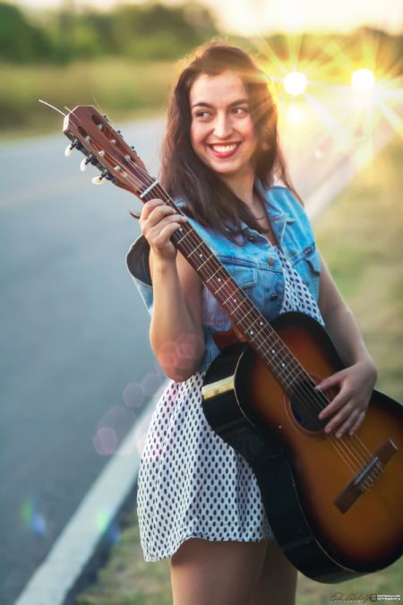 Con aptitudes e intereses por el arte desde muy chica, sus primeros pasos los da en el primario comenzando a tocar la guitarra a los siete años. Participaba tocando y cantando en las misas y actos que se realizaban en su colegio.